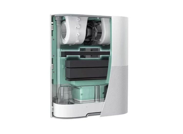 Проветривание осуществляется на основании показателей встроенного датчика углекислого газа (CO2) — когда в комнате становится душно (уровень CO2 превышает 600 ppm), AIRNANNY A7 автоматически начинает подавать в помещение свежий уличный воздух, фильтруя, подогревая и увлажняя его до оптимальных значений.