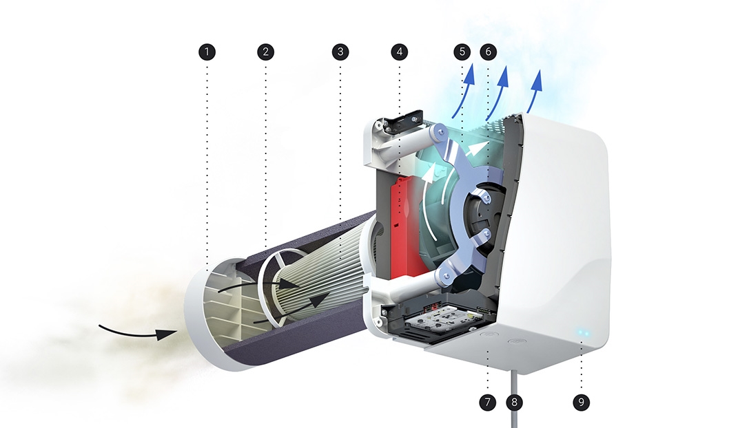 Высокоэффективный канальный фильтр класса Hepa H11 задерживает мелкодисперсную пыль, пыльцу, споры плесени, частицы РМ2.5 и микробы с эффективностью 95%